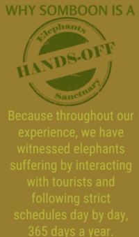 Met trots kunnen we zeggen dat dit project, Somboon Legacy Foundation, in maart 2019 van start is gegaan en gelegen is in een prachtige groene omgeving in de provincie Kanchanaburi. Het is een uniek non-profit project dat wordt gerund door Nederlandse olifantenliefhebbers met veel ervaring op dit gebied. Hier verzorgt men oude olifanten. Er is niks mooier dan wilde dieren te zien zoals het hoort in hun naturlijke tropische omgeving, waar ze gewoon zichzelf kunnen zijn. Zonder de stress van een programma, kunnen de olifanten hun natuurlijk gedrag uiten en hun eigen gang gaan.
